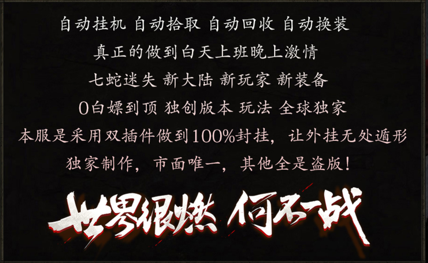 - 【版本说明】: 上线就送MAX刀速+双倍爆率提升.装备嗷嗷全爆.人人土豪装逼又激情!
